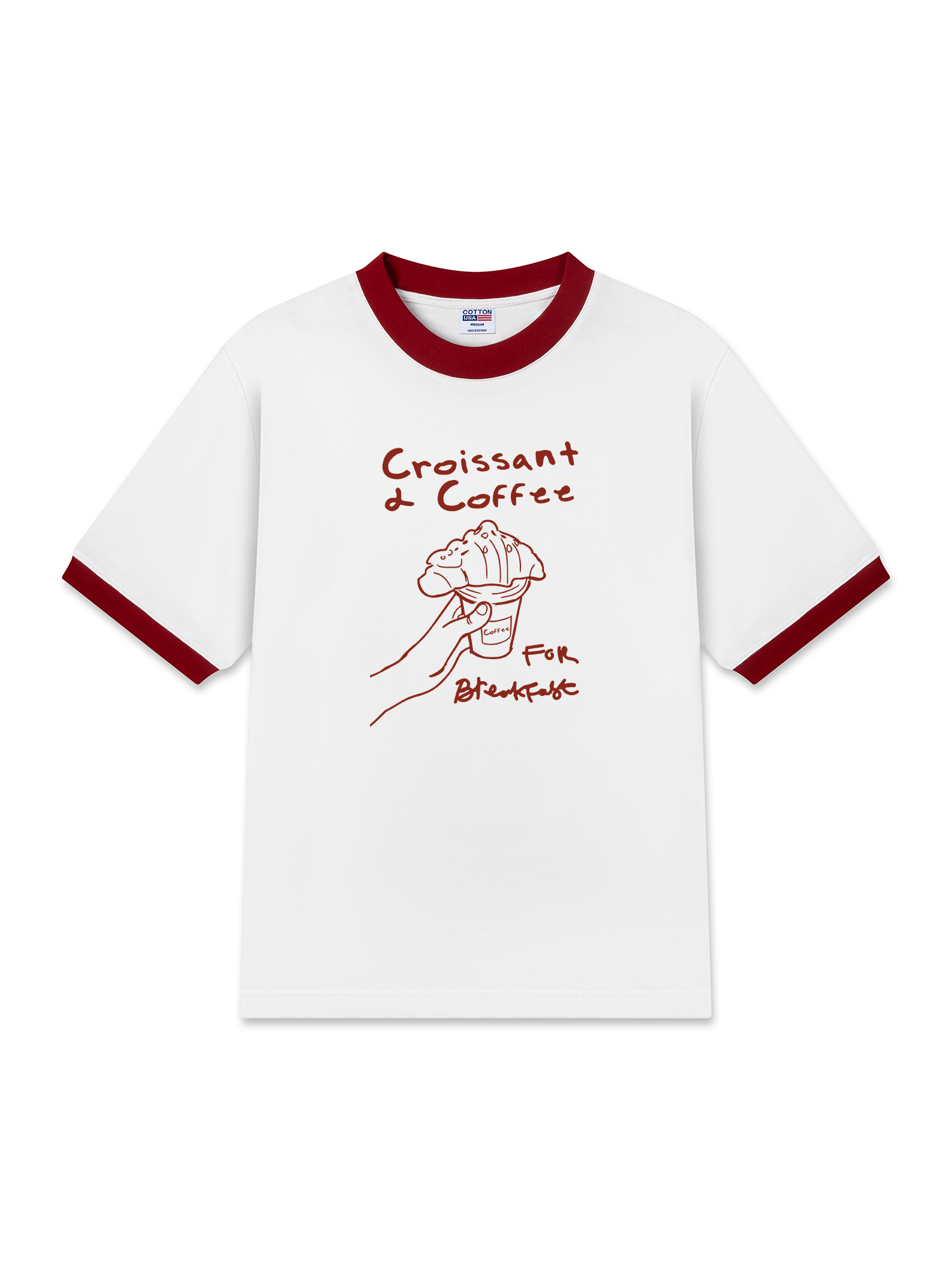Áo Thun Ringer Relaxed Fit Croissant & Coffee For Breakfast